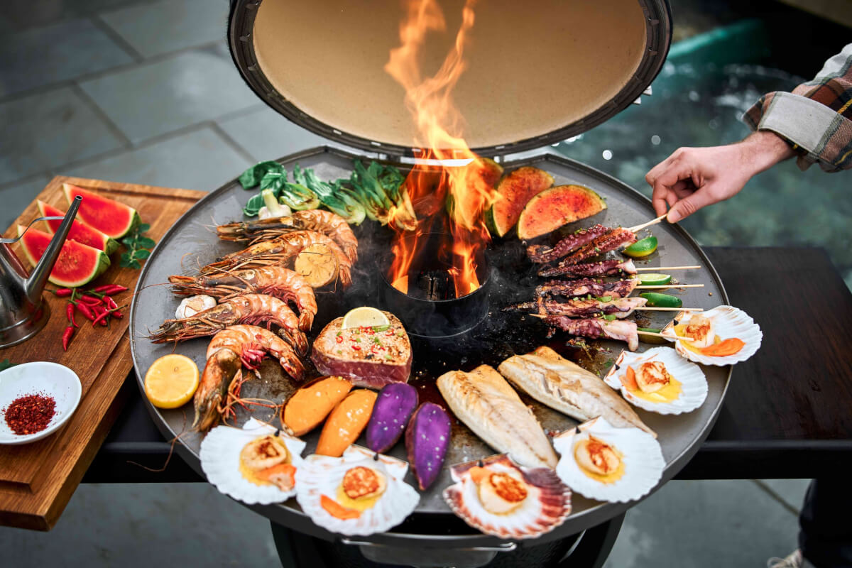 With the 8 mm thick fire plates from MONOLITH, you can transform your kamado into a teppanyaki plate in no time at all.