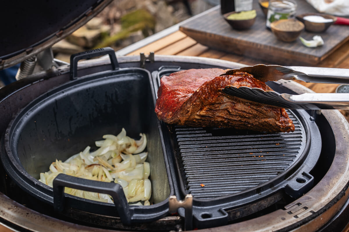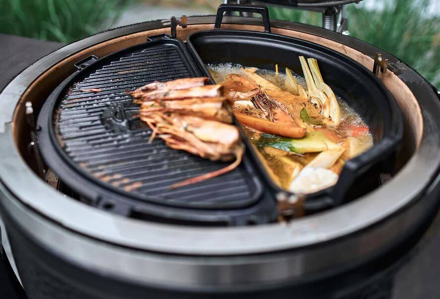 The pot is constructed from heavy-duty cast iron and features the same half-moon shape as the Smart Grid System