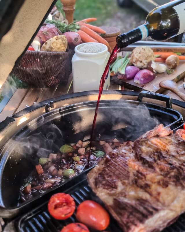 Constructed in a half-moon shape, this pot includes a stainless steel grate to create a second level of space inside the pot, this increases the cooking capabilities beyond the normal Dutch Oven