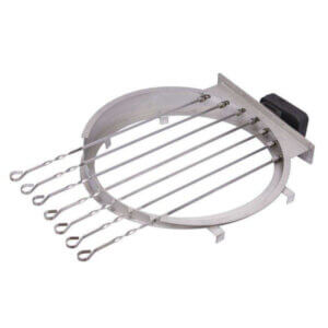 With this optional stainless steel skewer set for the Monolith Classic Rotisserie, you can turn the MONOLITH into a Mangal or Churrasco grill. Grill on up to 7 skewers at the same time. Perfect for shashlik, Brazilian meat skewers, vegetables or kebabs. The motor ensures that all the skewers are simultaneously rotated.
