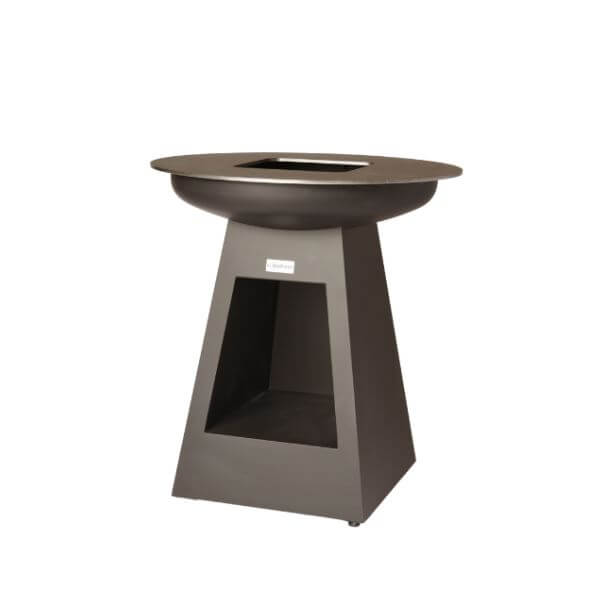 The circular design invites everyone to gather around the warmth, share stories, and cook together.